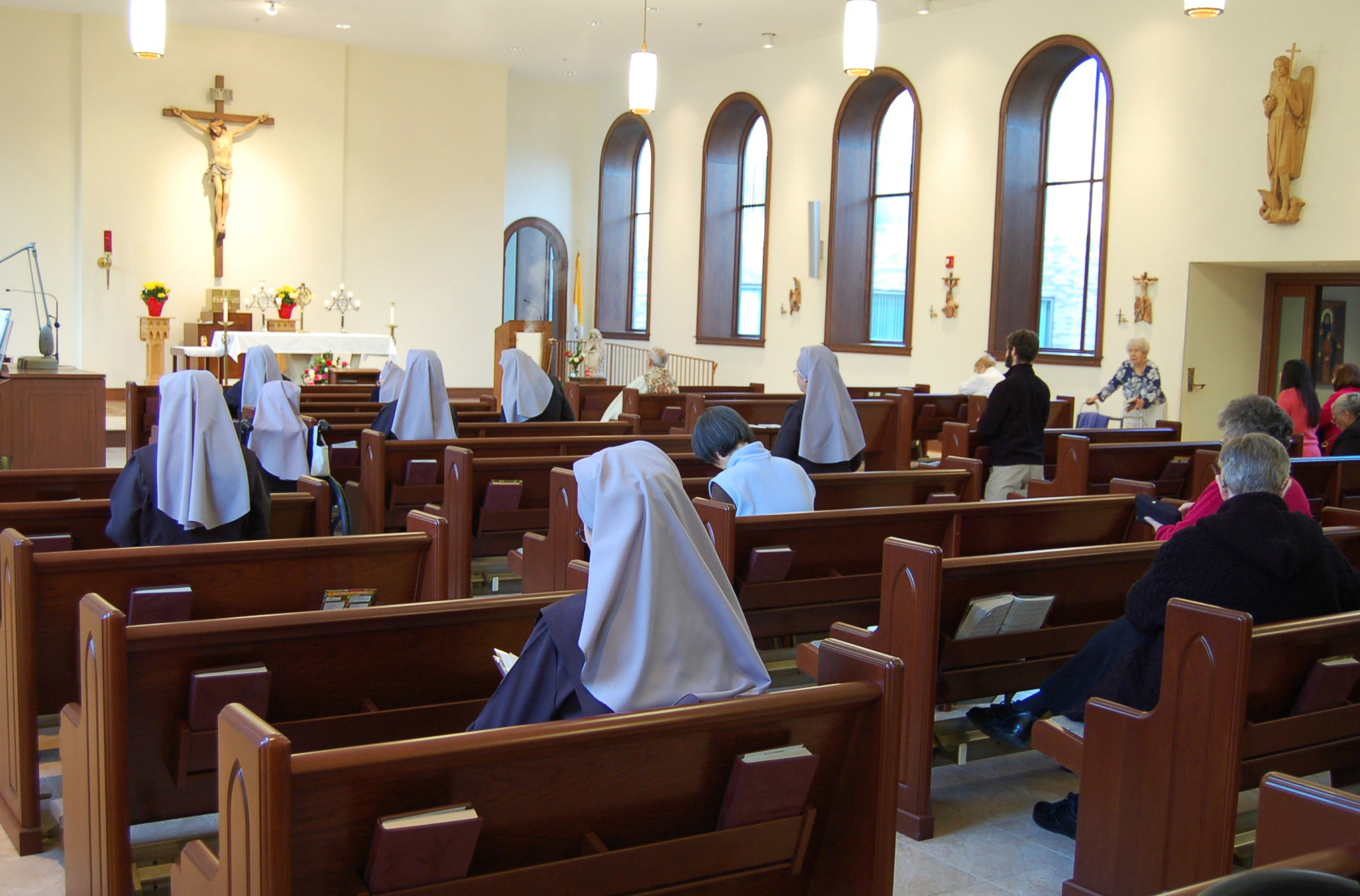We wear our religious habit as a reminder to ourselves that we belong totally to God and as a public witness of our consecration, of Gospel poverty and of God’s presence in the world.